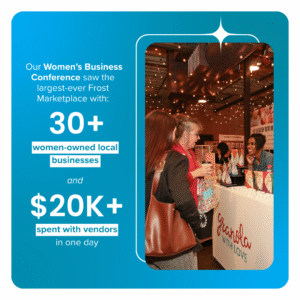 After targeted marketing efforts, we received over 150 applications and selected 30 businesses to feature in our Frost Marketplace, resulting in over $20,000 of vendor revenue — providing a boost in more ways than one. Hundreds of attendees also gained actionable insights and tools through meaningful conversations at our AI Office Hours, powered by Improving, and Table Talks, powered by CMP. These conversations and tools are changing how our region’s businesses approach talent, culture and opportunity.